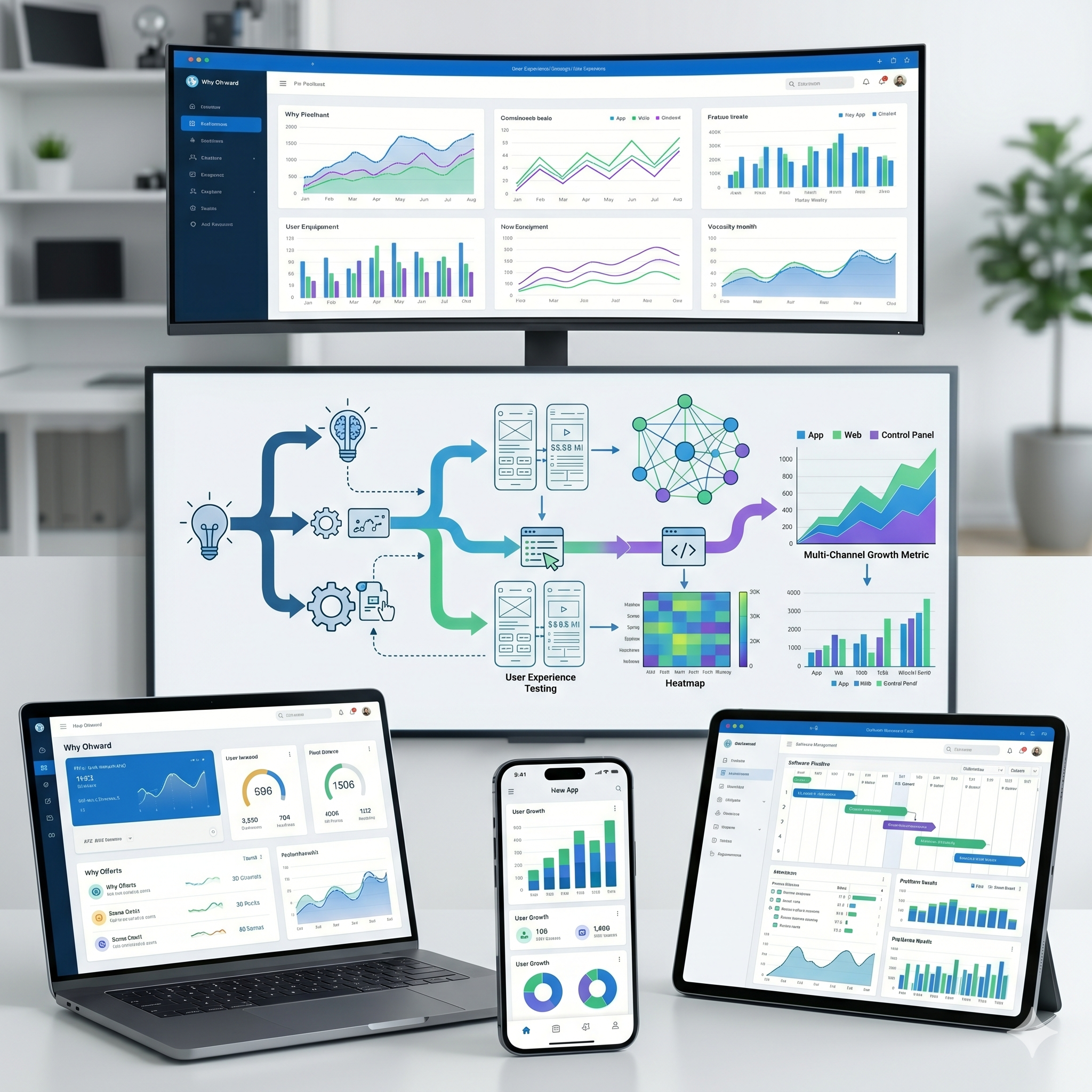 نحوّل أفكار العملاء إلى تطبيقات جوال ومنصات ويب ولوحات تحكم احترافية، بتجربة استخدام عالية وبنية قابلة للنمو.